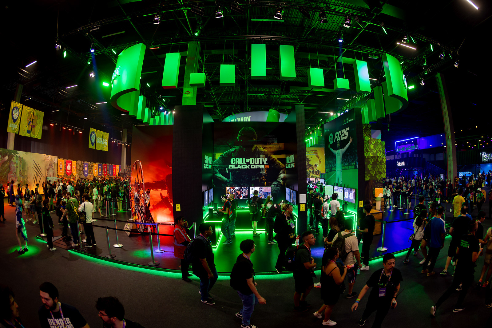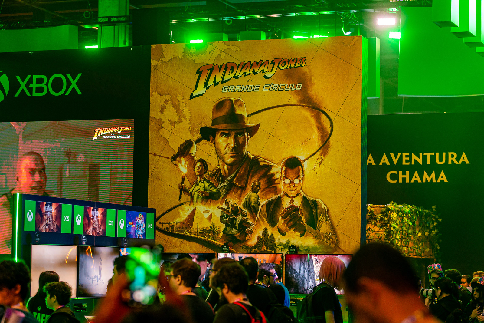 Com 540 m² de área, desenvolvemos um estande 360° com mais de 60 estações de jogo, onde os visitantes podiam experimentar mais de 15 títulos diferentes em dispositivos variados. Criamos também áreas instagramáveis inspiradas em franquias como Minecraft, Diablo e Call of Duty, além de uma ativação exclusiva de Indiana Jones e o Grande Círculo™, com gameplay exclusivo antes do lançamento oficial.